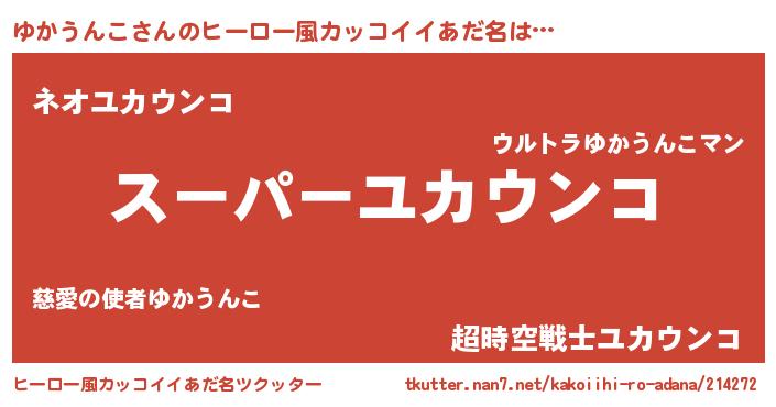 | 女子向けラノベタイトル風あだ名 | 『ゆかうんこの玉の輿計画!』 |