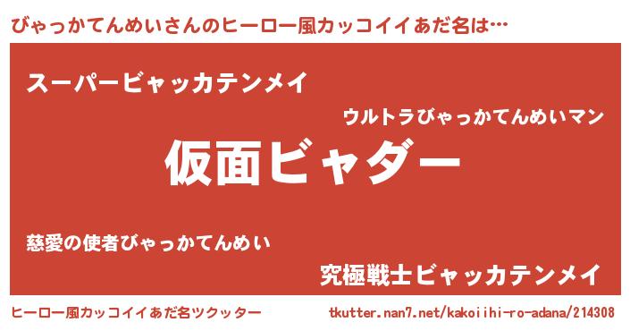 | 意味不明あだ名 | 『住所不定無職びゃっかてんめい(91歳)』 |