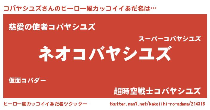 | 胡散臭い通販商品みたいなあだ名 | 『来世でも幸せになれる水素水…その名も「コバヤシユズ」』 |