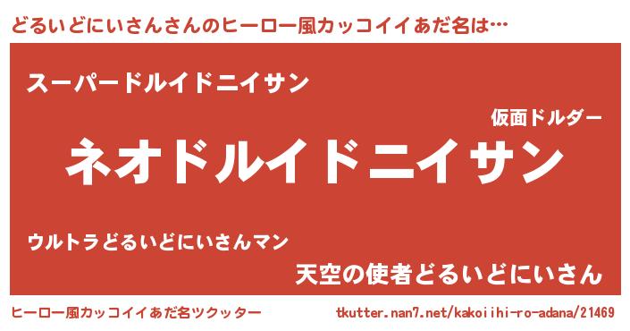| 男性向けラノベタイトル風あだ名 | 『誰もが恐れるあのどるいどにいさんが、ぼくの専属メイドになるようです。』 |
