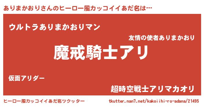 | 女子向けラノベタイトル風あだ名 | 『ありまかおりの卵を拾いまして』 |