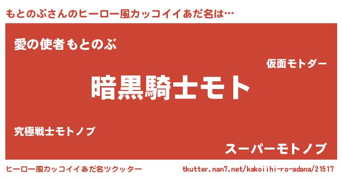 | 胡散臭い通販商品みたいなあだ名 | 『信頼と実績のサプリメント…その名も「もとのぶ」』 |