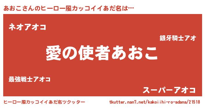 | 女子向けラノベタイトル風あだ名 | 『あおこ恋絵巻』『横柄あおこと宰相陛下』 |