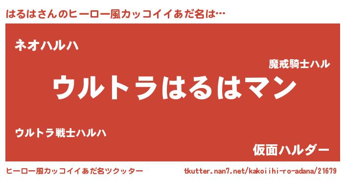 | 男性向けラノベタイトル風あだ名 | 『緋弾のハルハ』『魔弾の王とはるは』 |