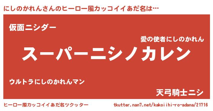 | 女子向けラノベタイトル風あだ名 | 『にしのかれん姫と円卓の騎士』 |