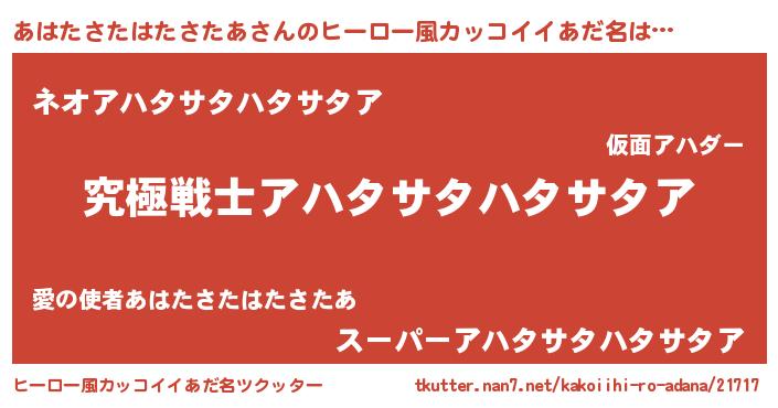 | 料理風あだ名 | 『あはたさたはたさたあとほうれんそうの和風グラタン』 |