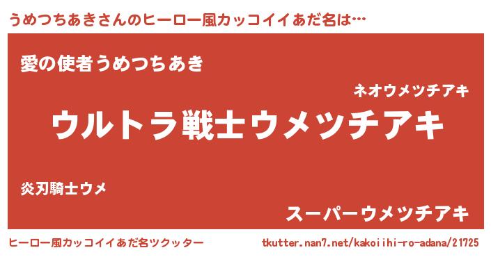 うめつちあきさんのヒーロー風カッコイイあだ名をツクッター!