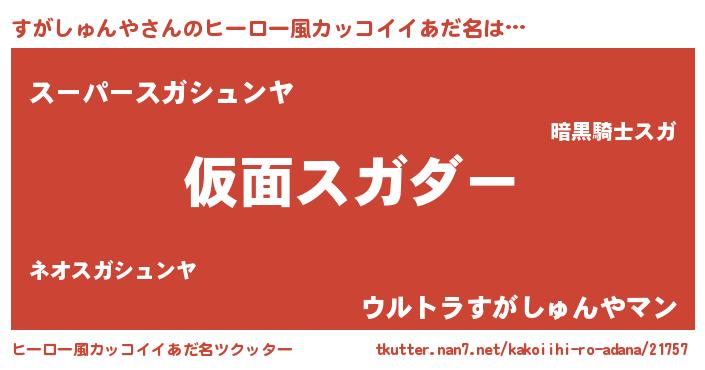 | 男性向けラノベタイトル風あだ名 | 『魔弾の王とすがしゅんや』 |