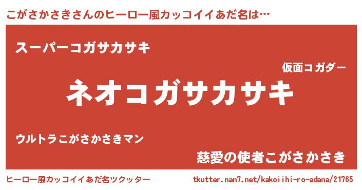 | 男性向けラノベタイトル風あだ名 | 『こがさかさきという概念が存在しない退屈な世界 』 |
