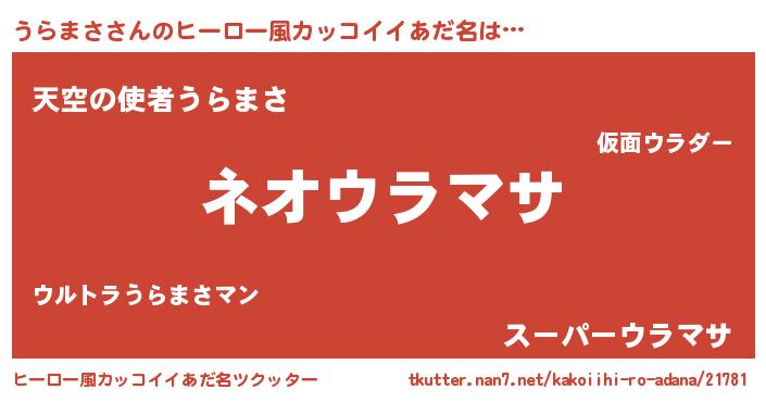 | 男性向けラノベタイトル風あだ名 | 『うらまさに滅ぼされるだけの簡単なお仕事です』 |