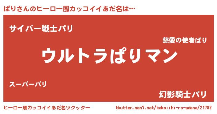 | 男性向けラノベタイトル風あだ名 | 『ぱり~年齢イコール彼女いない歴の魔法使い~』 |