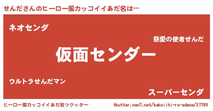 | 男性向けラノベタイトル風あだ名 | 『魔弾の王とせんだ』『せんだの憂鬱』 |