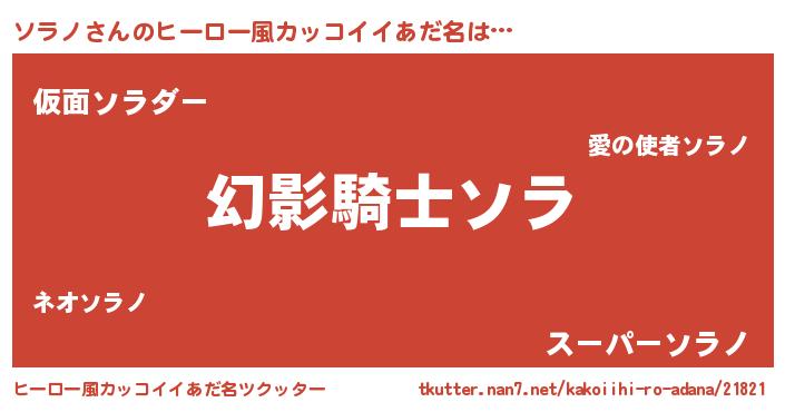 | 男性向けラノベタイトル風あだ名 | 『ソラノの嫁は女の子じゃないと思った?』 |