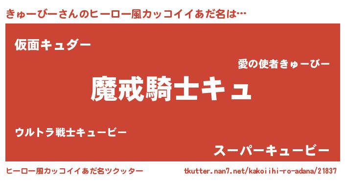 | 女子向けラノベタイトル風あだ名 | 『きゅーびーの卵を拾いまして』 |