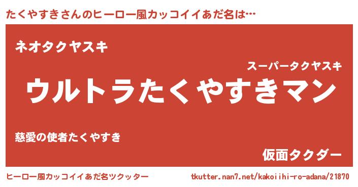 | 男性向けラノベタイトル風あだ名 | 『タクヤスキスレイヤー』 |