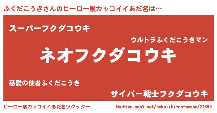 | ヘコむあだ名 | 『ふくだこうき(苦笑)』『ふくふぇ~』 |