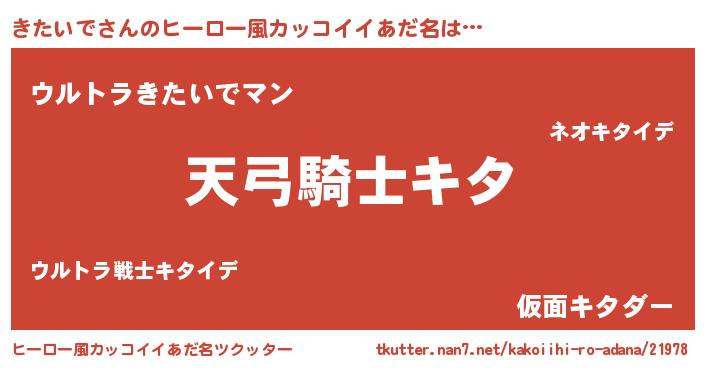 | 男性向けラノベタイトル風あだ名 | 『きたいでの嫁は女の子じゃないと思った?』 |