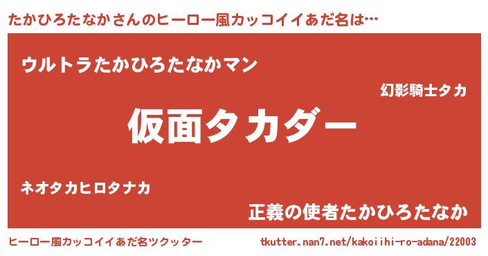 | 男性向けラノベタイトル風あだ名 | 『この素晴らしい世界にたかひろたなかを!』 |