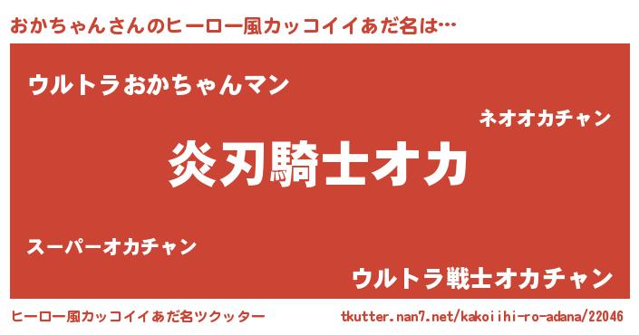 | 女子向けラノベタイトル風あだ名 | 『おかちゃんの玉の輿計画!』 |