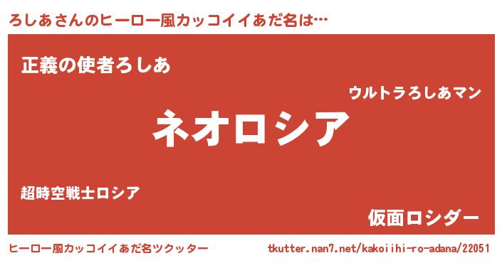 | 男性向けラノベタイトル風あだ名 | 『転生したらろしあだった件』 |