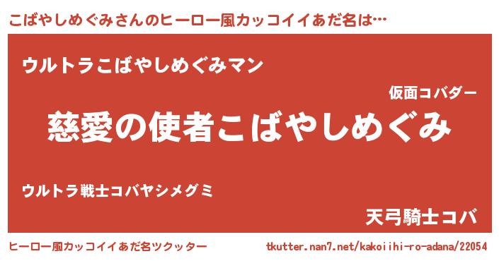 | 男性向けラノベタイトル風あだ名 | 『こばやしめぐみに滅ぼされるだけの簡単なお仕事です』 |