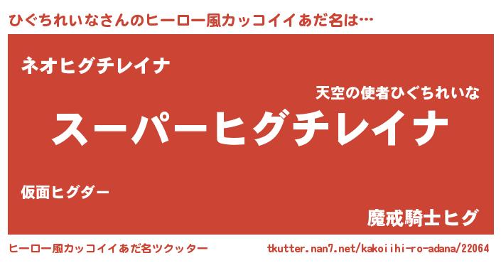 | 女子向けラノベタイトル風あだ名 | 『ひぐちれいなの玉の輿計画!』 |