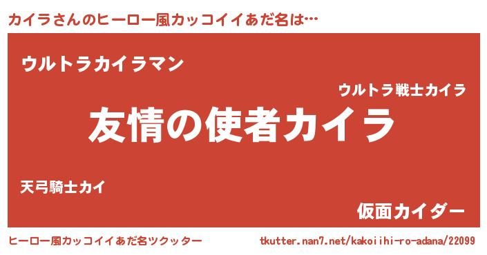 | 男性向けラノベタイトル風あだ名 | 『カイラスレイヤー』『魔弾の王とカイラ』 |