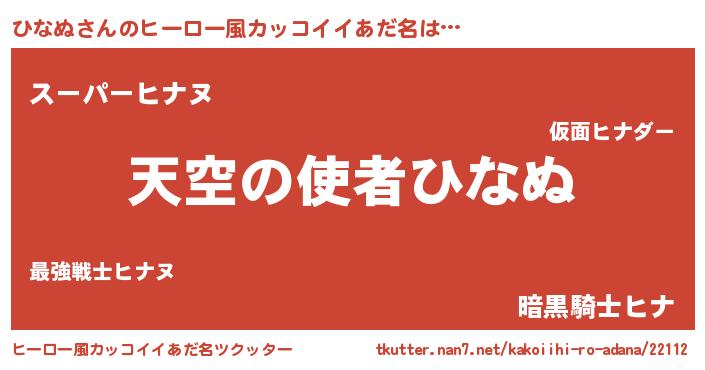 | ファンタジー風あだ名 | 『クインヒット』『ヒナフェル』 |