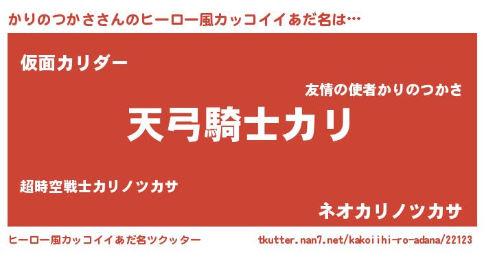 | 男性向けラノベタイトル風あだ名 | 『かりのつかさの嫁は女の子じゃないと思った?』 |