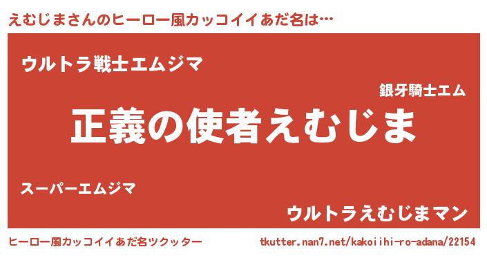 | 男性向けラノベタイトル風あだ名 | 『おまえをオタクにしてやるから、俺をえむじまにしてくれ! 』 |