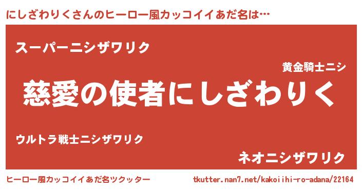 | 男性向けラノベタイトル風あだ名 | 『転生したらにしざわりくだった件』 |