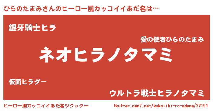 | 胡散臭い通販商品みたいなあだ名 | 『絶対に幸福をもたらす健康食品…その名も「ひらのたまみ」』 |