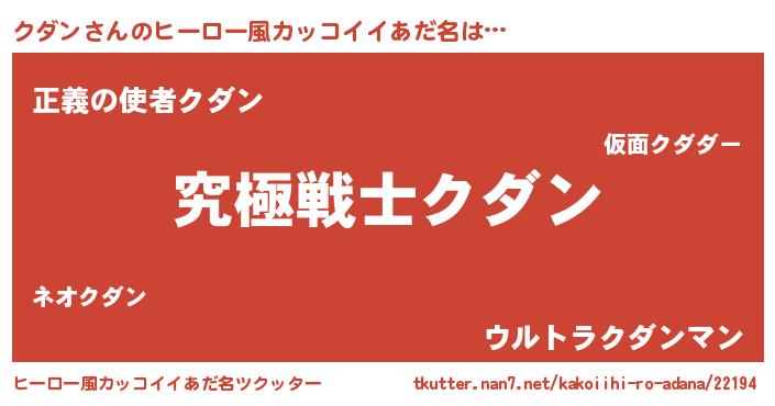 | 男性向けラノベタイトル風あだ名 | 『クダンに滅ぼされるだけの簡単なお仕事です』 |