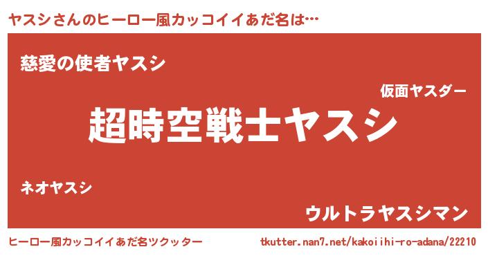 | 女子向けラノベタイトル風あだ名 | 『ヤスシなんてお断りですっ。』 |