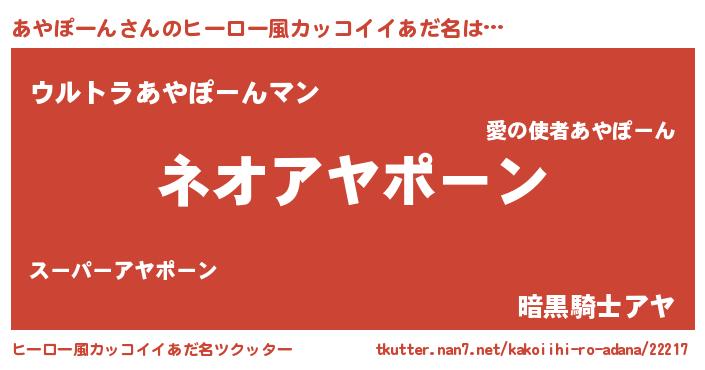 | 男性向けラノベタイトル風あだ名 | 『転生したらあやぽーんだった件』 |
