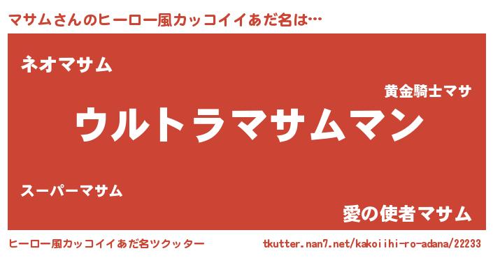 | 男性向けラノベタイトル風あだ名 | 『やはりマサムの青春ラブコメはまちがっている 』 |