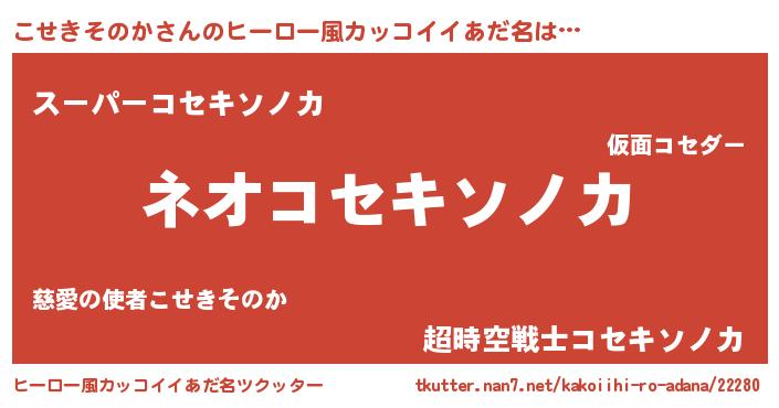 | 男性向けラノベタイトル風あだ名 | 『緋弾のコセキソノカ』 |