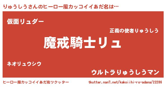 | 胡散臭い通販商品みたいなあだ名 | 『信頼と実績のサプリメント…その名も「りゅうしう」』 |