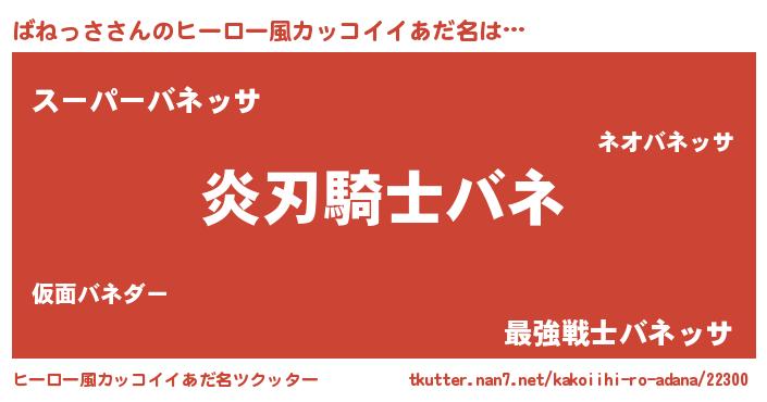 | 男性向けラノベタイトル風あだ名 | 『ばねっさの嫁は女の子じゃないと思った?』 |