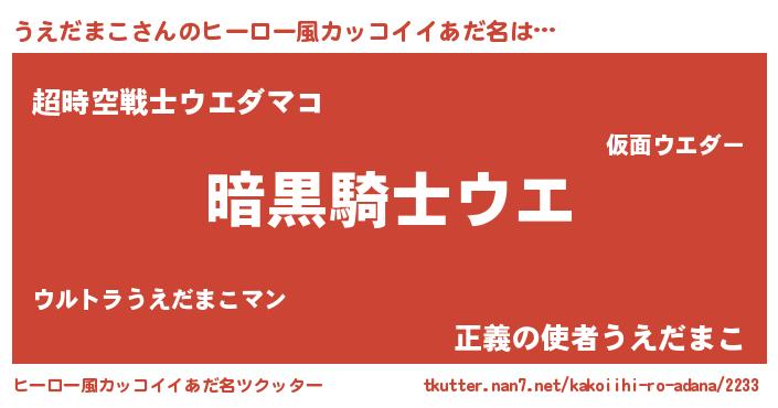 | ポケモン風あだ名 | 『ヒウエダマコ』『ウエセウス』 |