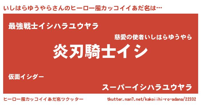 | 女子向けラノベタイトル風あだ名 | 『いしはらゆうやら様がみてる』 |