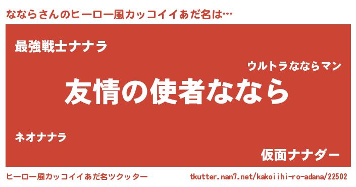 | 女子向けラノベタイトル風あだ名 | 『ななら夫妻のなれそめ』『闇のななら』 |