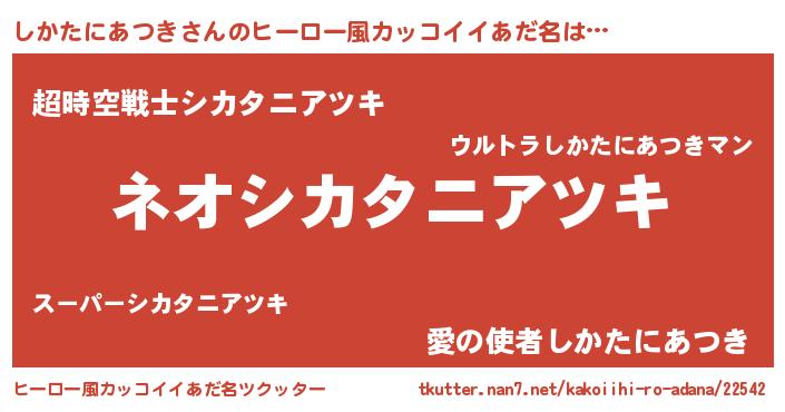 | 男性向けラノベタイトル風あだ名 | 『しかたにあつきという概念が存在しない退屈な世界 』 |