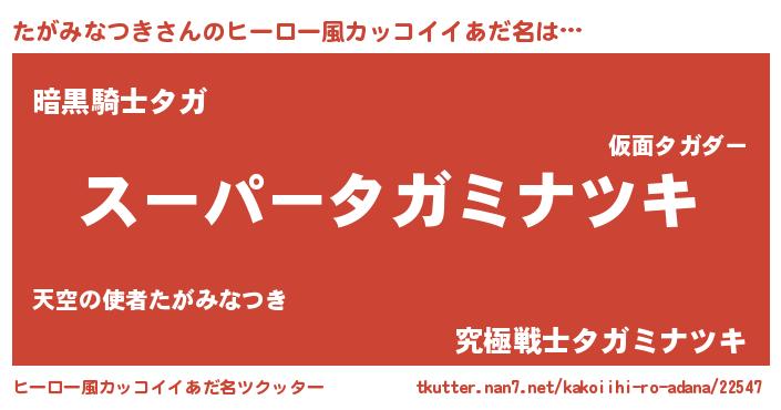 | 男性向けラノベタイトル風あだ名 | 『たがみなつきの憂鬱』 |