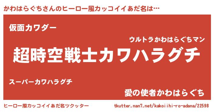 | 女子向けラノベタイトル風あだ名 | 『かわはらぐちなんてお断りですっ。』 |