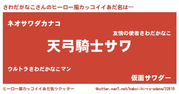 | 男性向けラノベタイトル風あだ名 | 『さわだかなこの嫁は女の子じゃないと思った?』 |
