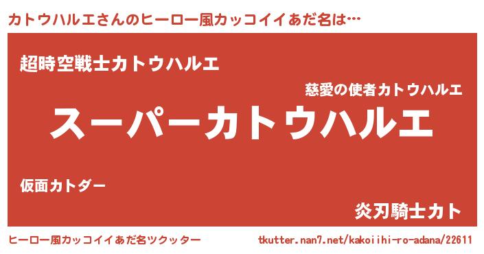 | 男性向けラノベタイトル風あだ名 | 『カトウハルエスレイヤー』 |