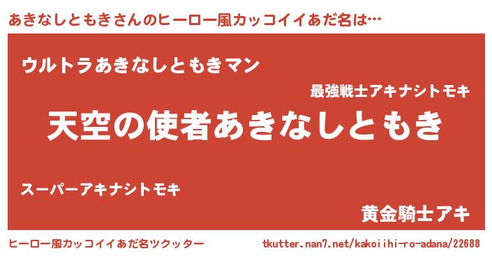 | 男性向けラノベタイトル風あだ名 | 『ノーゲーム・ノーアキナシトモキ』 |