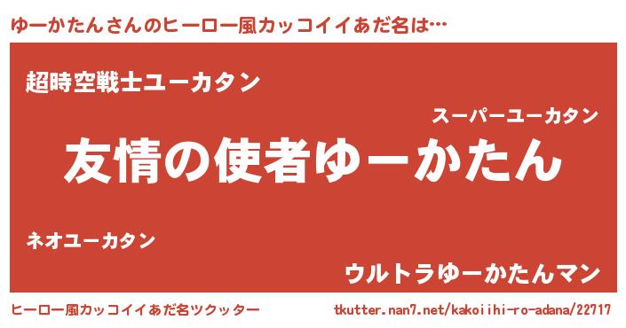 | 男性向けラノベタイトル風あだ名 | 『おまえをオタクにしてやるから、俺をゆーかたんにしてくれ! 』 |