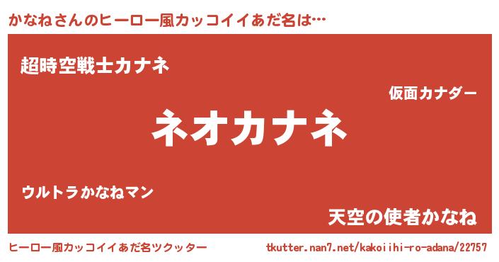 | 女子向けラノベタイトル風あだ名 | 『かなねの玉の輿計画!』『かなね恋絵巻』 |